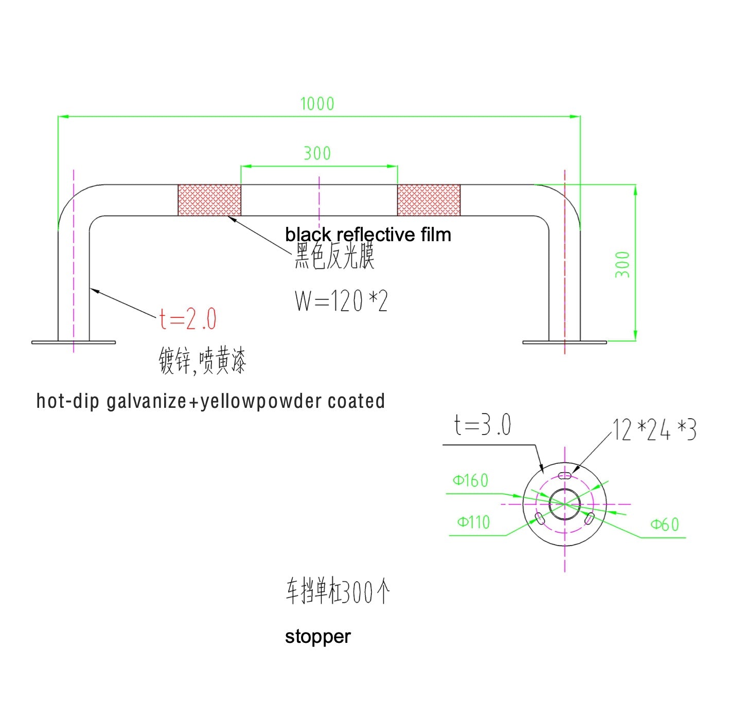 Rammschutzbügel 100 cm flach, Rammschutzgeländer, aus Stahl, zum Aufdübeln